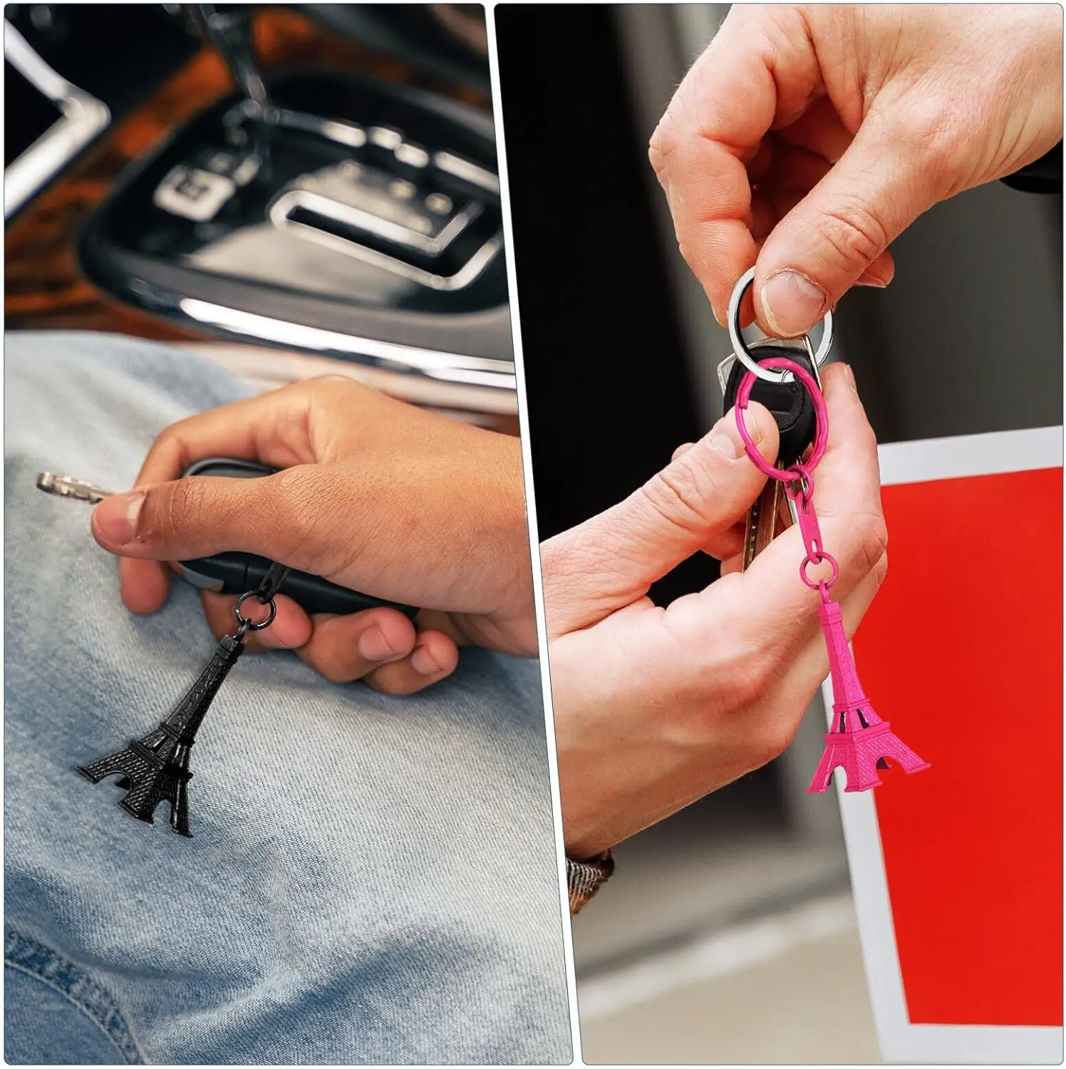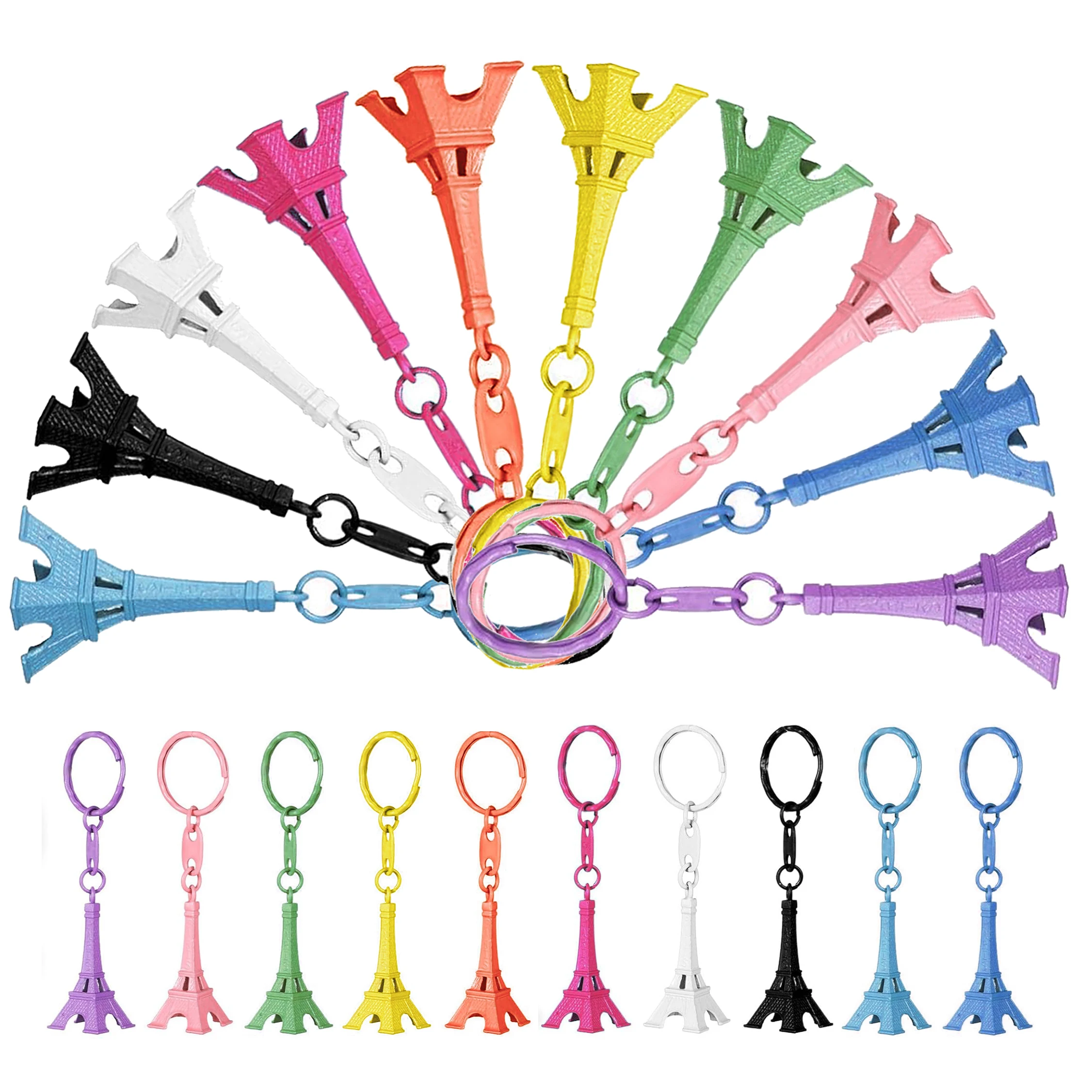 10-100Pcs Paris Eiffel Tower Keychain Mini Eiffel Tower Keyring Candy Color Key Ring 10 Colors