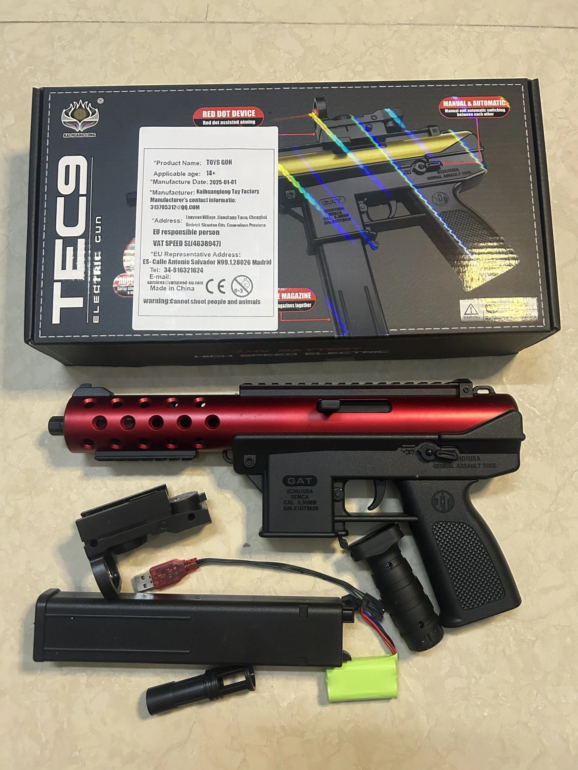 Be the first to review “2025 New Electric Continuous-Fire Toy Gun Tec9 Can Fire Gel Bullets 7-8mm with 7.4V Battery and USB Charging Cable, Multiple Colors Available” Cancel reply