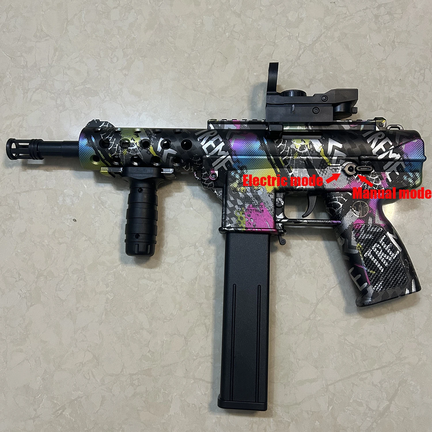 2025 New Electric Continuous-Fire Toy Gun Tec9 Can Fire Gel Bullets 7-8mm with 7.4V Battery and USB Charging Cable, Multiple Colors Available