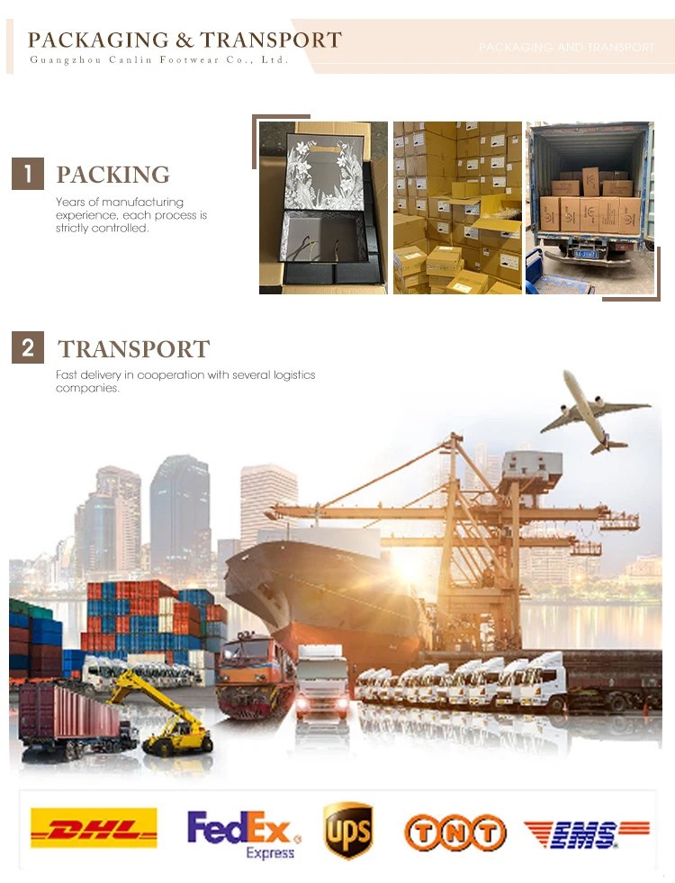 Q: Can I place a sample order?A: Yes, you can. You are welcome to place a sample order to test the quality or the market. We charge $50 for a single shoe sample. When the order quantity exceeds 100 pieces, we will refund the sample fee. Q: How long does it take to deliver the samples and the goods?A: Samples in stock can be ready within 5 days. Customized samples usually take about 7 to 15 days. For large quantity orders, it generally takes 20 to 25 days. Q: Are there any restrictions on the color for orders?A: Basically, customers can order any color. We will send the color card that the customer wants together with the sample. Q: Do you have a minimum order quantity (MOQ) restriction?A: Yes, the minimum order quantity is 100 pieces, but trial orders are also welcome. Q: How do you ship the goods and how long will it take for the goods to arrive?A: The shipping method depends on the quantity of your order. We usually ship by sea freight, air freight or express delivery. Sea freight takes 20 to 30 days, air freight takes 5 to 10 days, and express delivery takes 3 to 5 days. The express freight for samples shall be borne by the customer. Q: How do I place an order?A: First, inform us of your requirements. Second, we will quote according to your requirements or our suggestions. Then, the customer confirms the design drawing and pays the deposit for the formal order. Finally, we arrange production and shipment, and then you pay the balance. Q: Can my logo be printed on the products?A: Yes, it can. We provide OEM (Original Equipment Manufacturer) and ODM (Original Design Manufacturer) services. Please provide the AI file of the logo so that our designers can make renderings for your confirmation. Q: Are there any products in stock?A: For some products, we have stock in specific colors. We will check with the warehouse when customers make inquiries. Q: Do you support customized packaging?A: Of course. We support customized packaging with plastic bags, gift boxes or display boxes that can have warning texts on them.