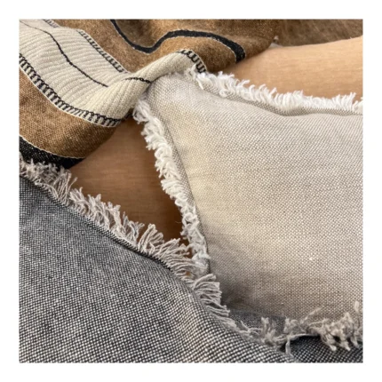 Housse de coussin en lin fran?ais lourd non teint avec des bords effiloch??s