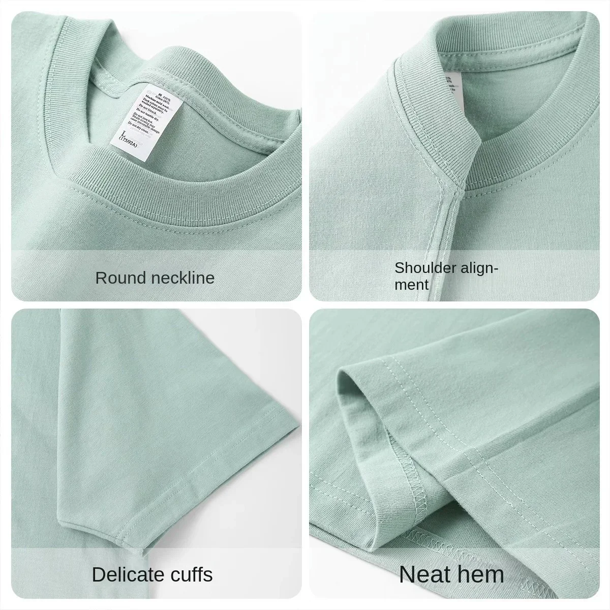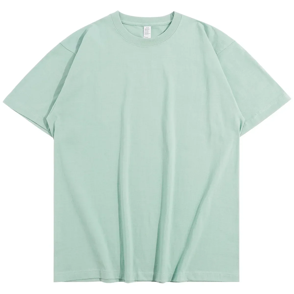 ??t?? vert clair poids lourd 300G T-shirt ?? manches courtes coton hommes ample d??contract?? chemise de Base cor??en T-shirt femmes