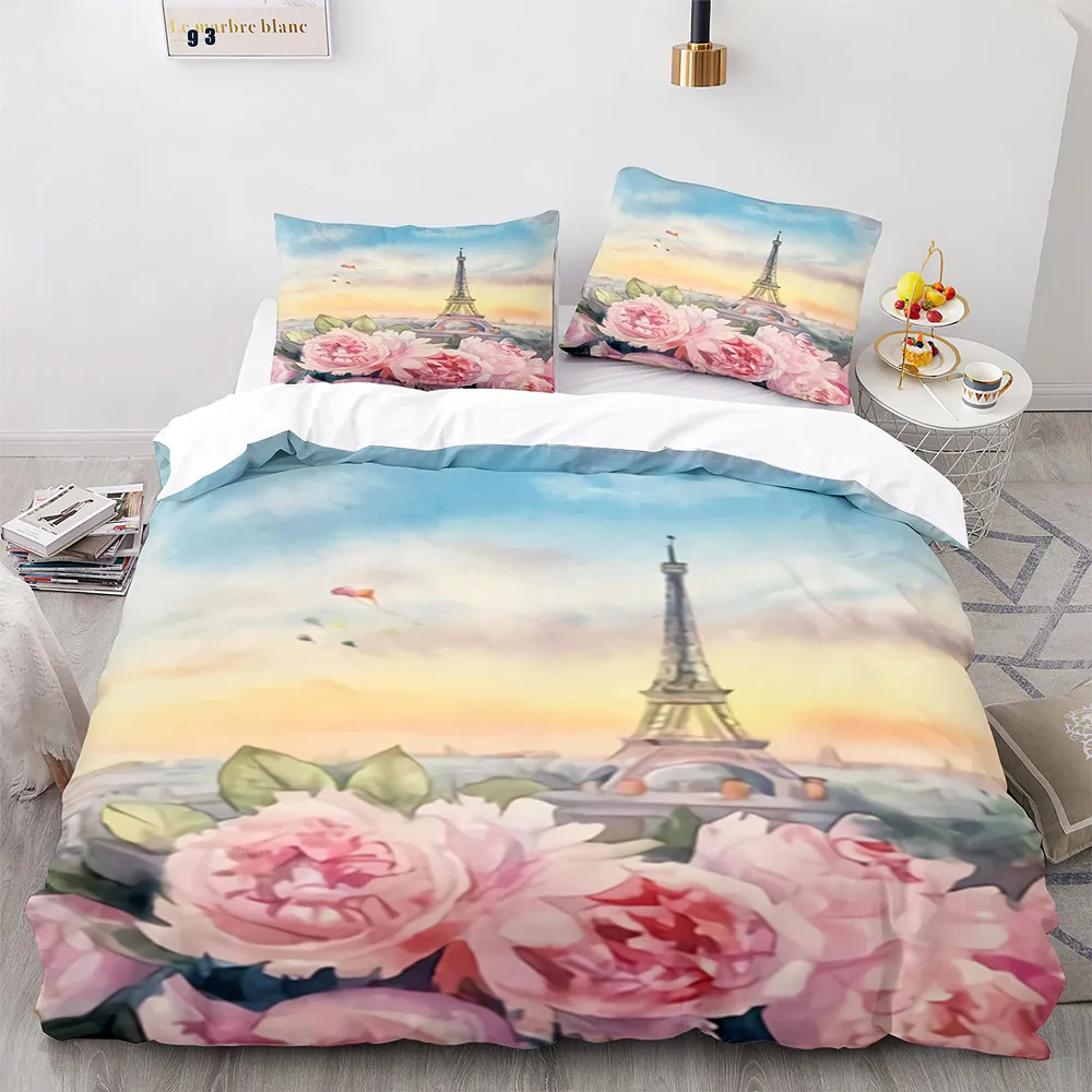 Vintage Eiffel Tower Duvet Cover – Beautiful World – Famous Building with Sakura Theme, for Kids Girls